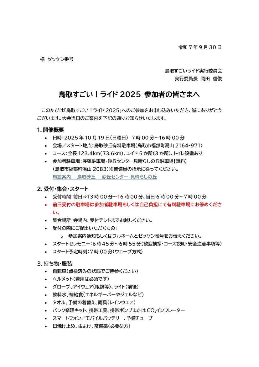 鳥取すごい!ライド2025 10月19日(日)開催決定!